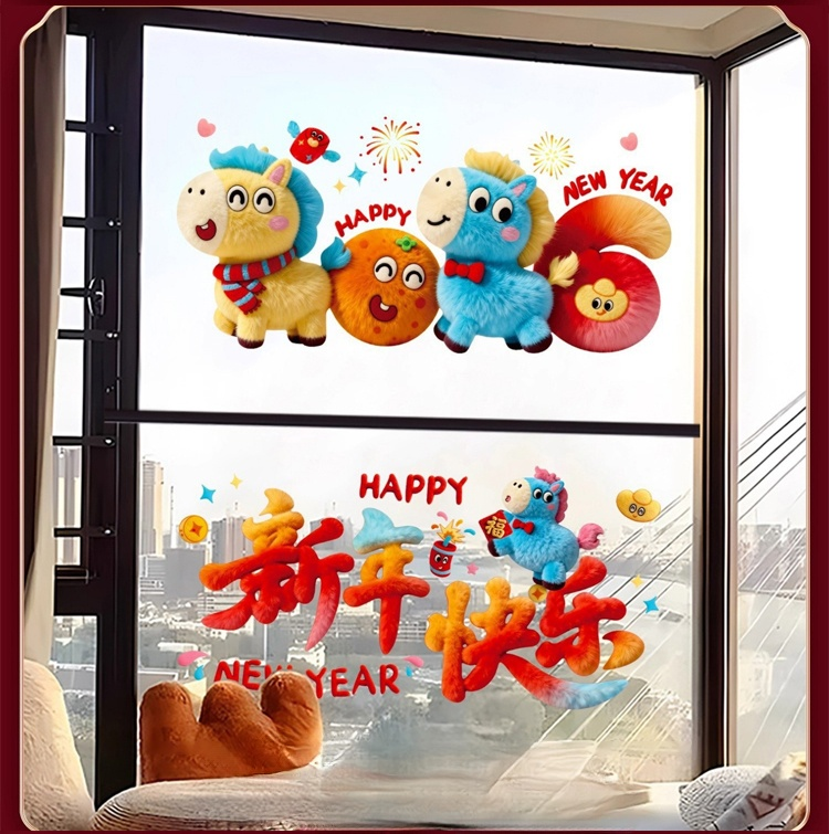 2026年新年玻璃貼紙卡通毛絨可愛門窗貼